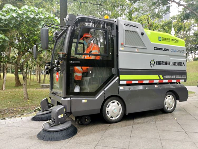 ▲智能清扫车可在有人驾驶和无人驾驶之间切换
